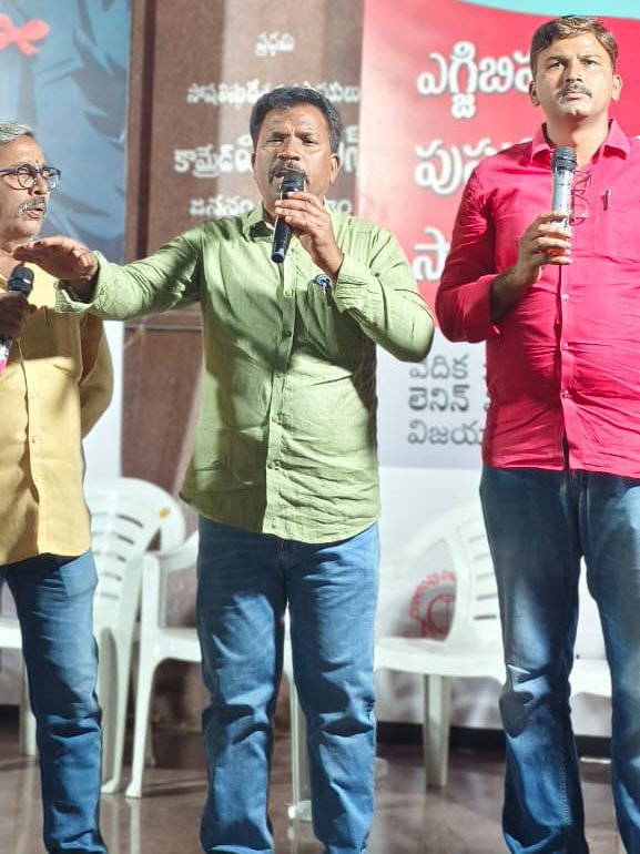 విజయవాడ లెనిన్ సెంటర్లో రెడ్ బుక్స్ డే (ఫిబ్రవరి 21, 2026) సందర్భంగా ప్రజానాట్యమండలి అభ్యుదయ గీతాలాపన.