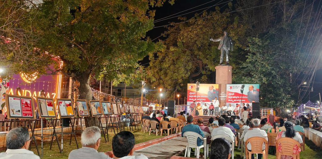 ఆంగ్లం: A reading of Lenin’s Imperialism, poster exhibition, and other cultural activities on the occasion of Red books day at Lenin centre in Vijaywada, Andhra Pradesh. This was done in coordination with ten left party state secretaries, artists and cultural organisations.